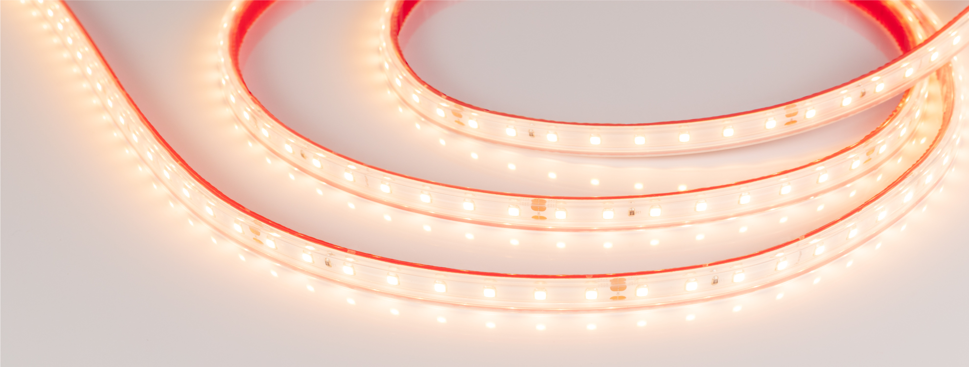 Силиконовая экструзия обеспечивает высокую степень пылевлагозащиты (IP67), благодаря чему ленту можно использовать во влажных помещениях и на улице.