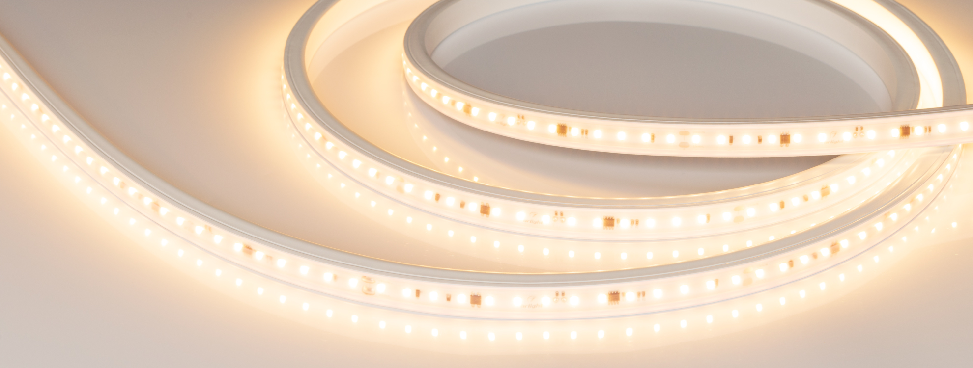 Светодиодная лента серии ARL A84 PV предназначена для декоративной подсветки помещений, подсветки потолочных ниш, рекламных конструкций и витрин в коммерческих помещениях. Лента подключается непосредственно к сети переменного тока 230 В, не требуя использования источников питания. Стабилизаторы позволяют подсоединять ленту длиной до 50 м и обеспечивают равномерную яркость свечения по всей длине. Гарантия — 5 лет.