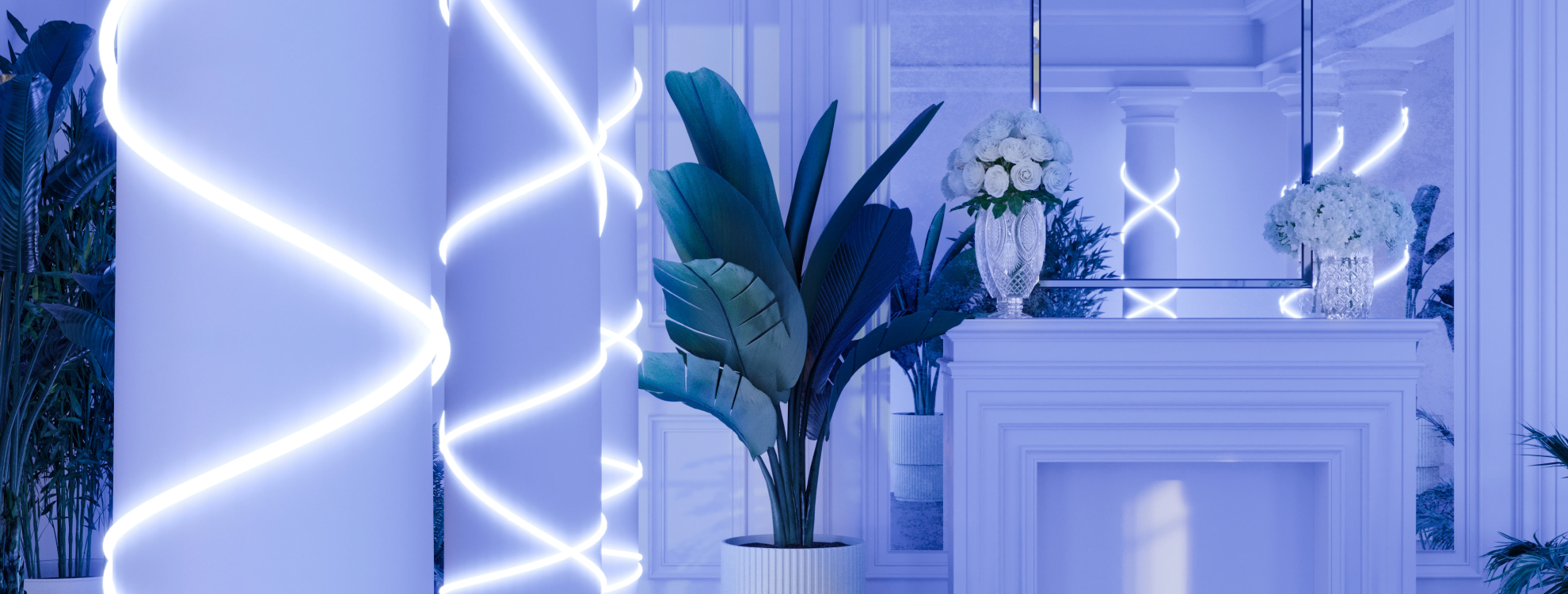 Объемный эффект При встраивании гибкого неона с куполообразной формой сечения на поверхности образуется объемная линия света.