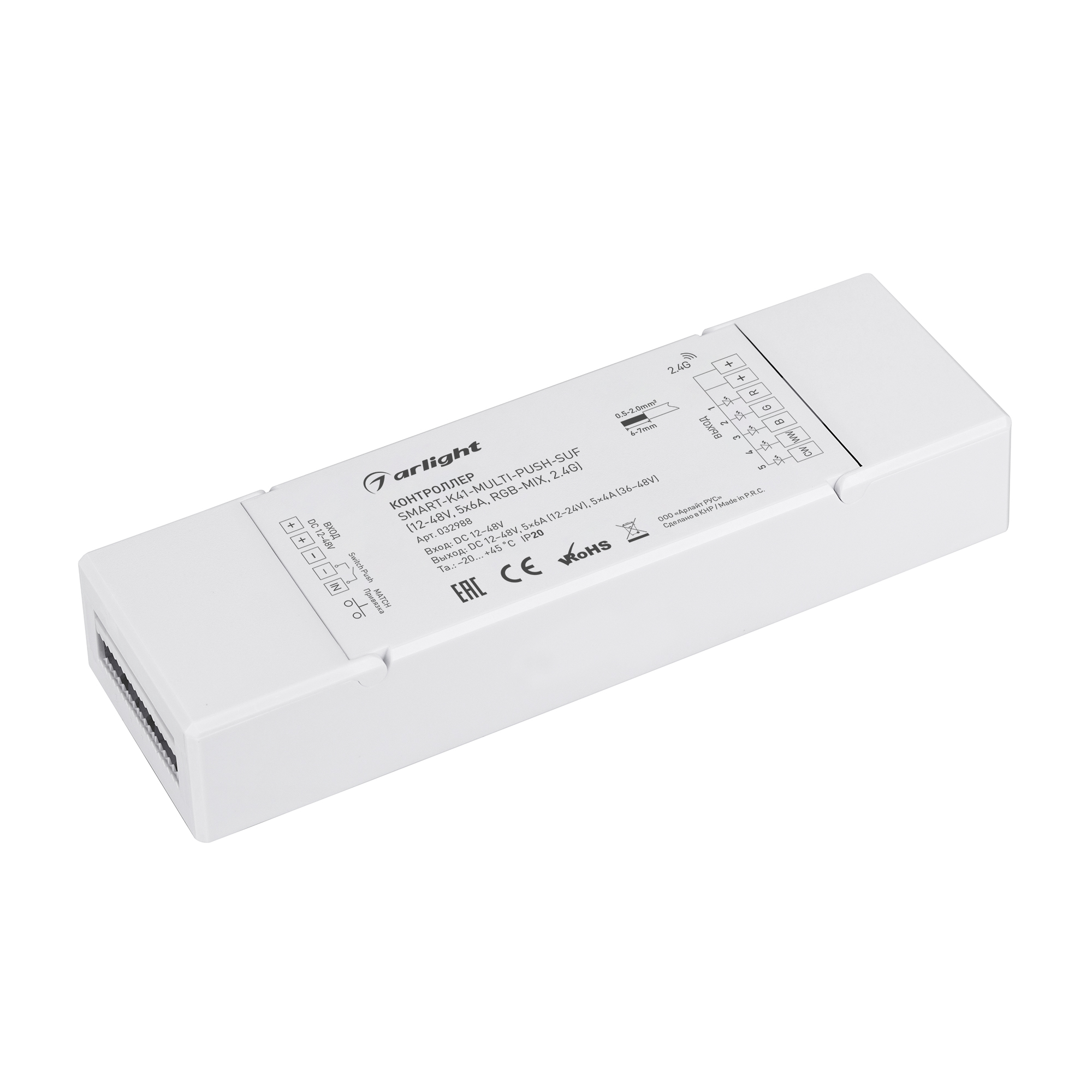 Контроллер SMART-K41-MULTI-PUSH-SUF (12-48V, 5x6A, RGB-MIX, 2.4G) (Arlight, IP20 Пластик, 5 лет)