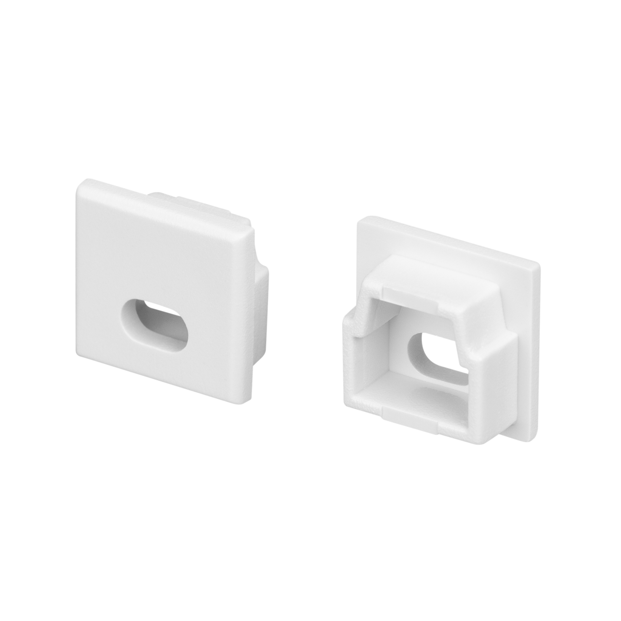 Белые заглушки (2 шт.) с отверстием для профиля FANTOM-BENT-W12-TOP-EDGE. Придают законченный вид светильнику, а также защищают светодиодную ленту от внешних факторов (грязи, пыли и прочего). Отверстие в заглушке позволяет вывести кабель питания светодиодной ленты.