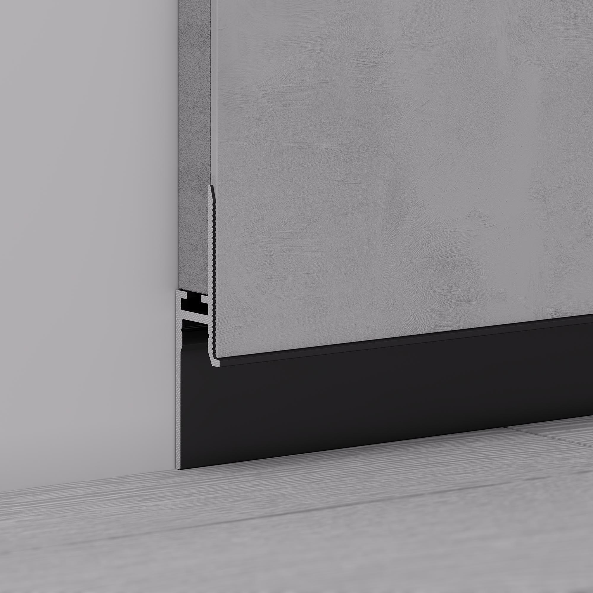 Встраиваемый алюминиевый профиль черного цвета для светодиодных лент и линеек под строительную отделку для создания эффекта парящей стены. Не является плинтусом, используется как декоративная накладка на фальш-стены.