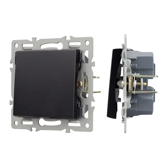 Механизм выключателя света одноклавишный на 1 пост, совместим с рамками серий VERSA/GLARE/PRESTO. Скрытый тип монтажа позволяет гармонично встроить в интерьер любого современного дизайн-проекта. Видимая часть механизма выполнена из высококачественного тугоплавкого пластика черного цвета. Контактная часть присоединяется при помощи винтовых зажимов, а усиленные монтажные лапки надежно фиксируют механизм в установочном подрозетнике.