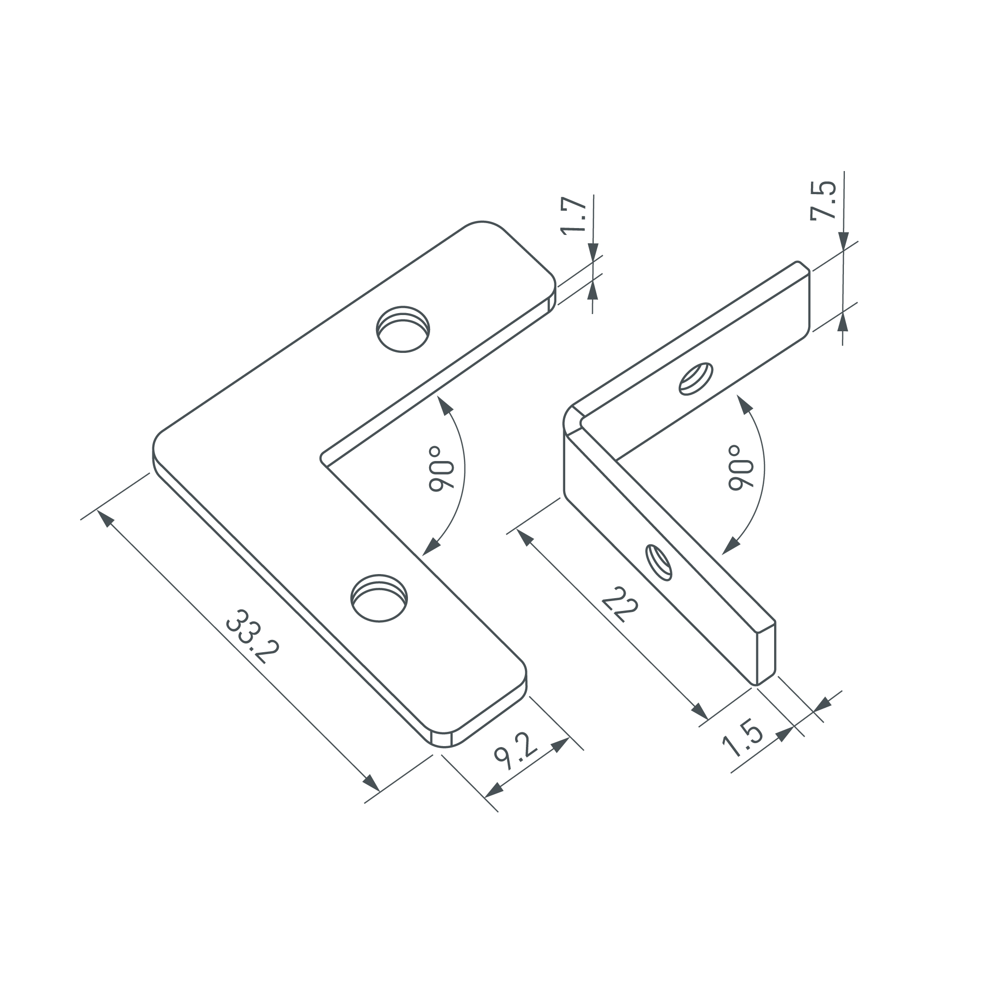 Коннекторы (4 шт. - два внутренних и два внешних) для соединения двух отрезков профилей LINE-6070 под углом 90°. Устанавливаются в паз, фиксируются идущими в комплекте винтами. Применяются при изготовлении светильников сложной геометрии.