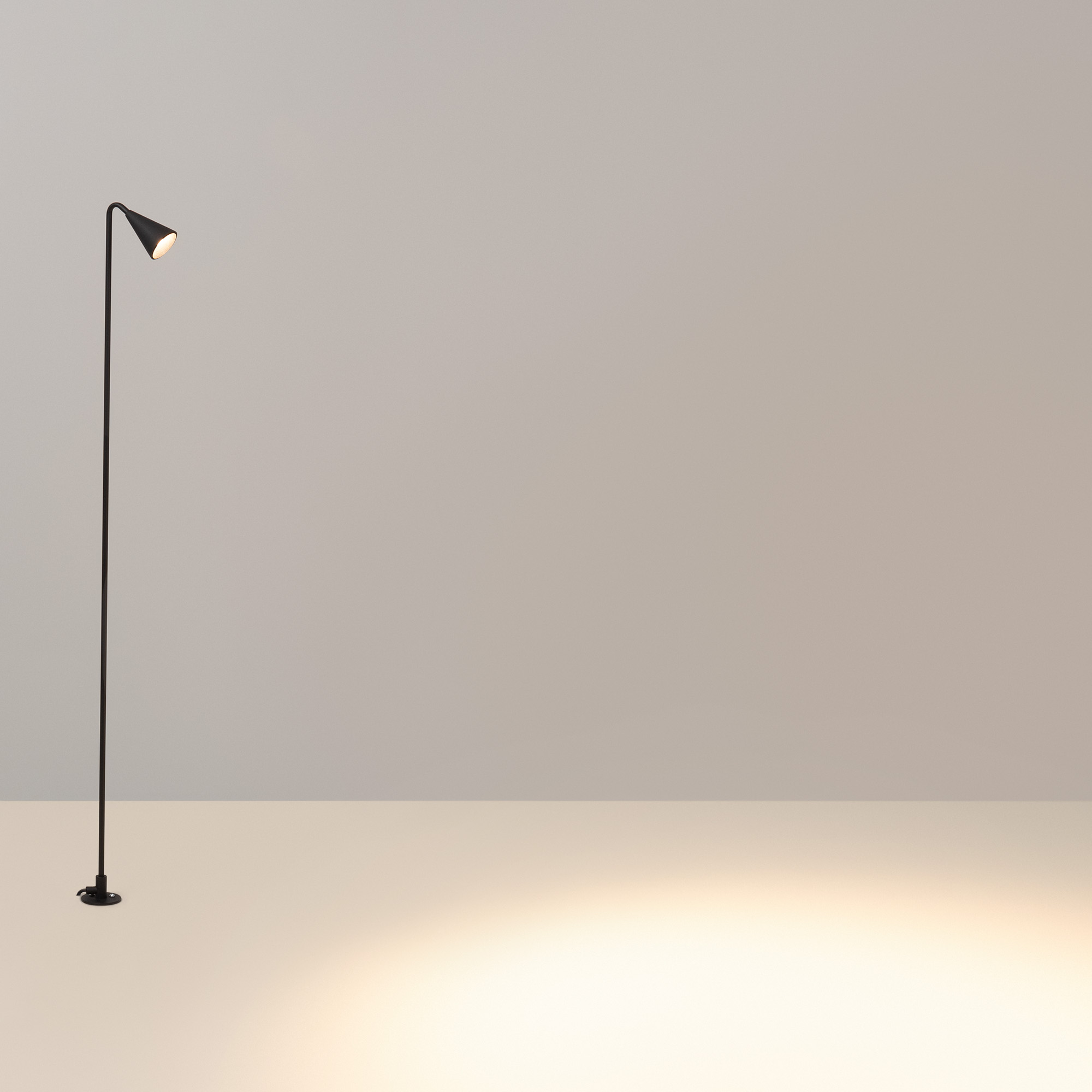 Уличный декоративный светодиодный светильник. Мощность 3 Вт, св. поток 280 лм, 100 лм/Вт, теплый 3000 K, CRI>80, угол излучения 40°, напряжение питания 24 В. Черный корпус из алюминия. Степень защиты IP65. Размер: диаметр 45 мм, высота 850 мм, высота углубления 160 мм. Монтаж в грунт с помощью основания пика (входит в комплект поставки). Драйвер приобретается отдельно.