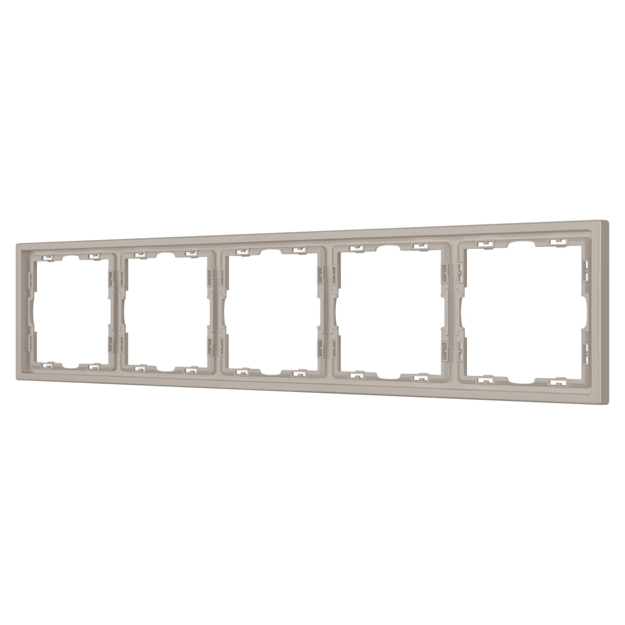 Рамка пластиковая на 5 постов, под встраиваемый механизм. Цвет - кашемир, с Soft-Touch поверхностью. Среднего уровня герметичности IP20. Ориентация монтажа горизонтальная. Габаритные размеры: длина 365 мм, ширина 81 мм, высота 8.55 мм. Гарантийный срок 12 мес.