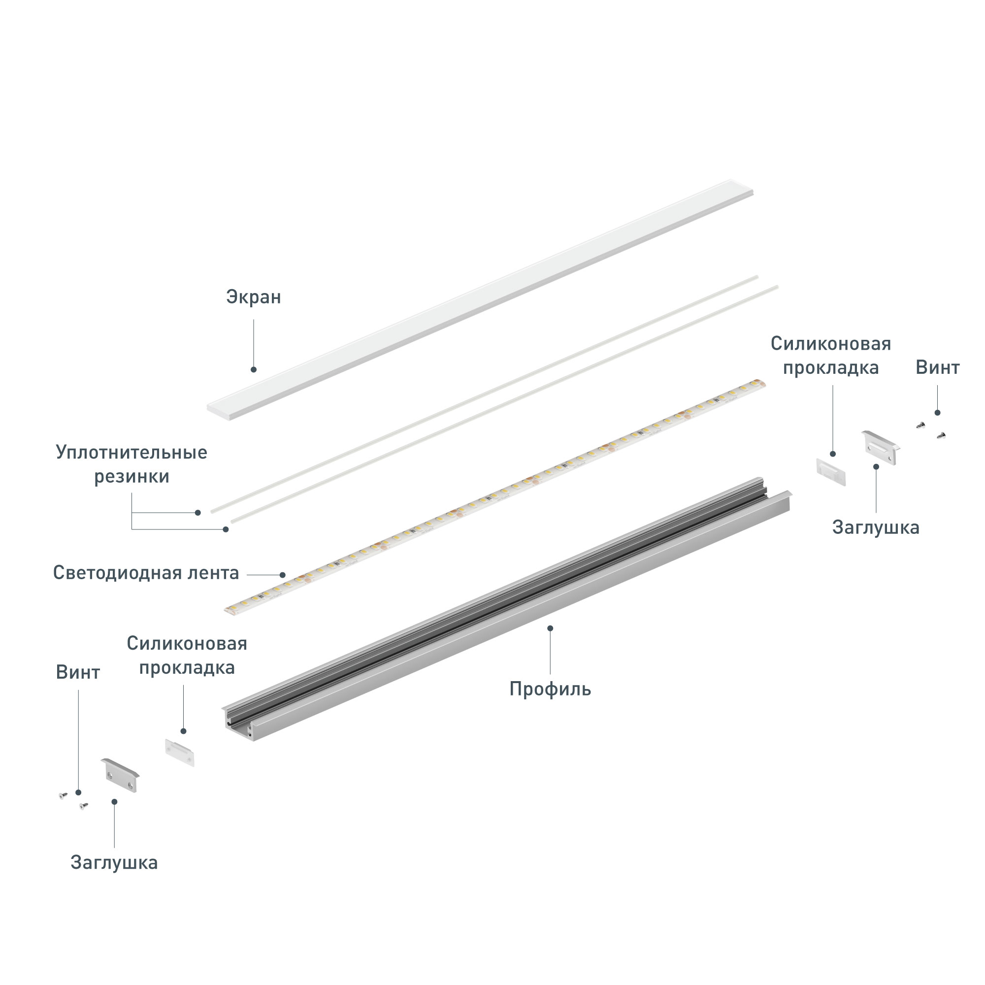 Алюминиевый анодированный профиль с фланцем. Возможность герметизации до IP65 (при использовании силиконового клея для фиксации экрана и заглушек), IK10 (08-10). Габаритные размеры (L×W×H): 2000x26,8x11 мм. Ширина площадки для ленты 12,2 мм. Заглушки и другие аксессуары приобретаются отдельно. Цена за 1 метр.