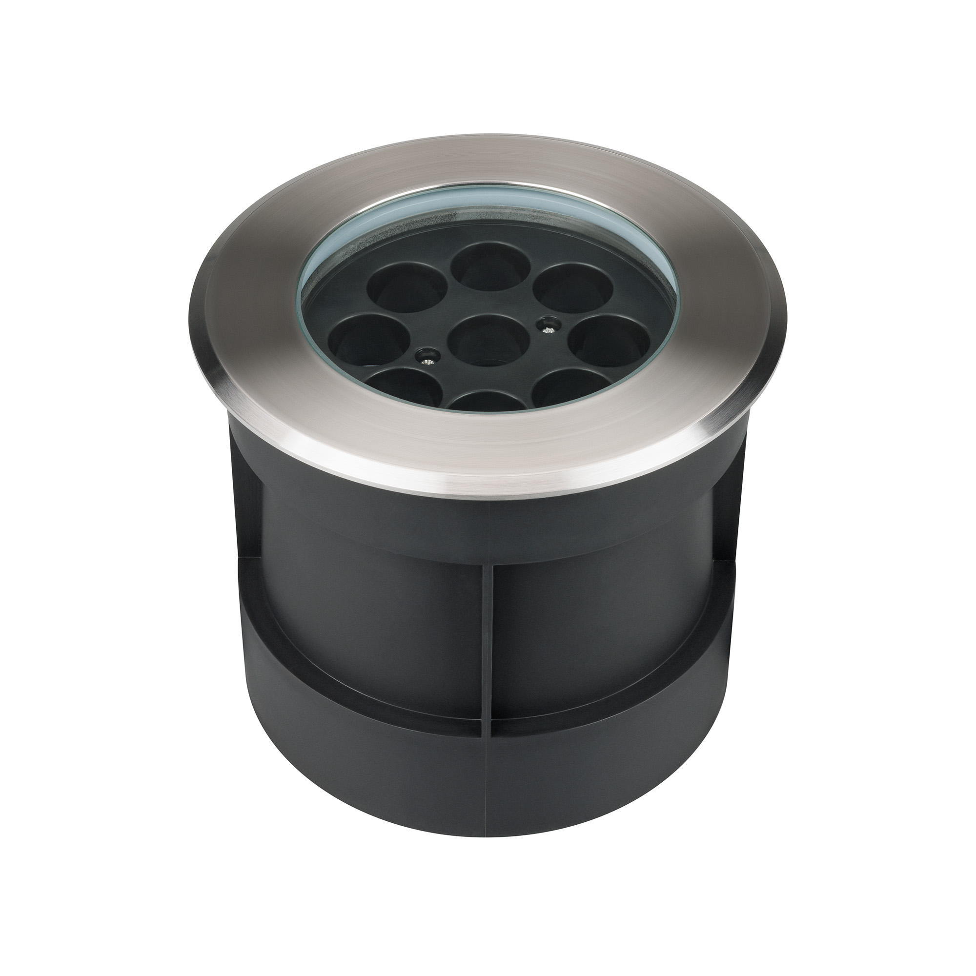 Встраиваемый светодиодный светильник LTD-DAFNA мощностью 16 Вт, тёплого цвета свечения (3000К), со световым потоком 1440 лм предназначен для ландшафтного освещения парковых и садовых дорожек, придомовых территорий, а также декоративной подсветки фасада. Узкий угол излучения 20° позволяет создать четкий акцент на подсвечиваемом объекте. Ударопрочный круглый корпус из нержавеющей стали и алюминия Ø160x135 мм и экран из закаленного стекла толщиной надежно защищают оптический блок со светодиодом от внешних воздействий. Степень пылевлагозащиты корпуса на уровне IP67 рассчитана на длительное использование на открытом воздухе, а так же обеспечивает надежную работу в неблагоприятных условиях. Установка в отверстие ДxВ Ø145x130 мм. Светильник поставляется в сборе с драйвером и питающим кабелем, что позволяет легко и быстро подключить его к сети 230 В.