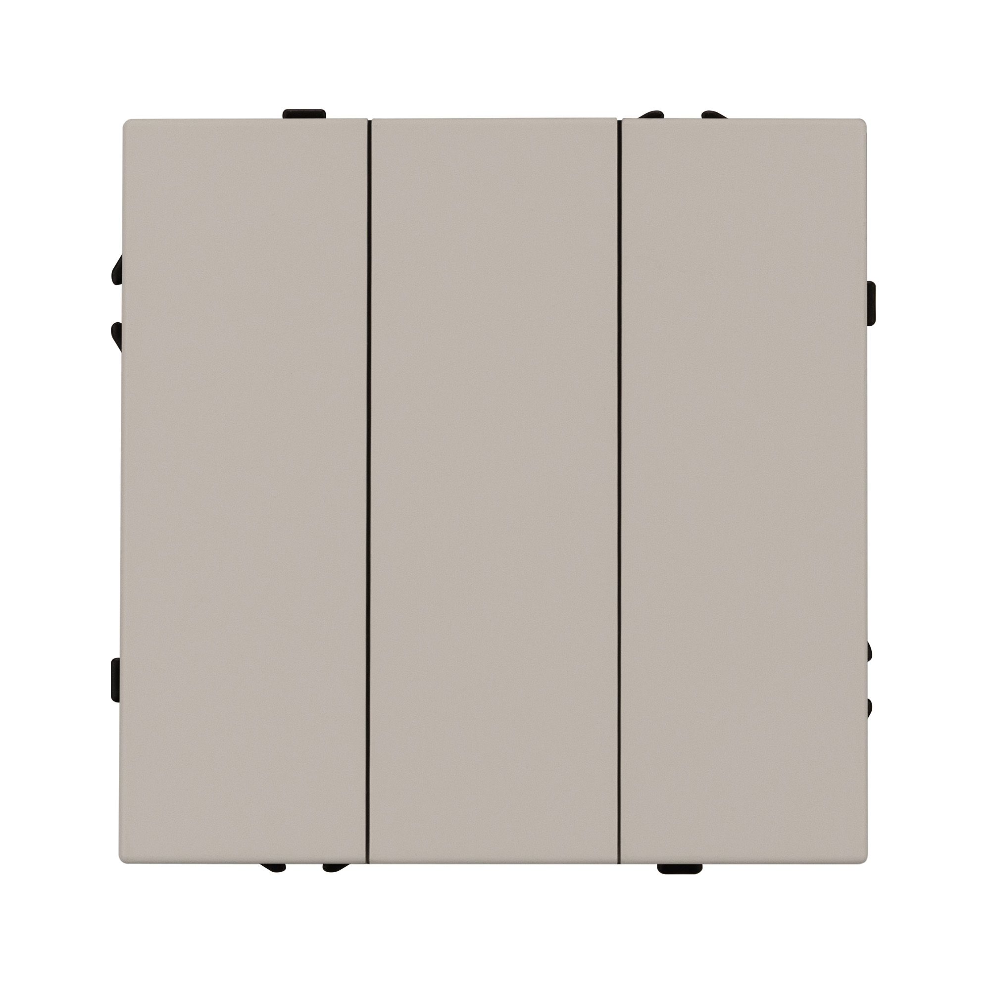 Механизм выключателя света клавишный на 1 пост 3 клавиши (непроходной). Цвет - кашемир, с Soft-Touch поверхностью. Без фронтальной рамки. Уровень пылевлагозащиты IP20. Выключатель устанавливается в стандартный круглый подрозетник круглого сечения диаметром 60мм. Габаритные размеры: длина 71 мм, ширина 71 мм, высота 52 мм. Гарантийный срок 10 лет.