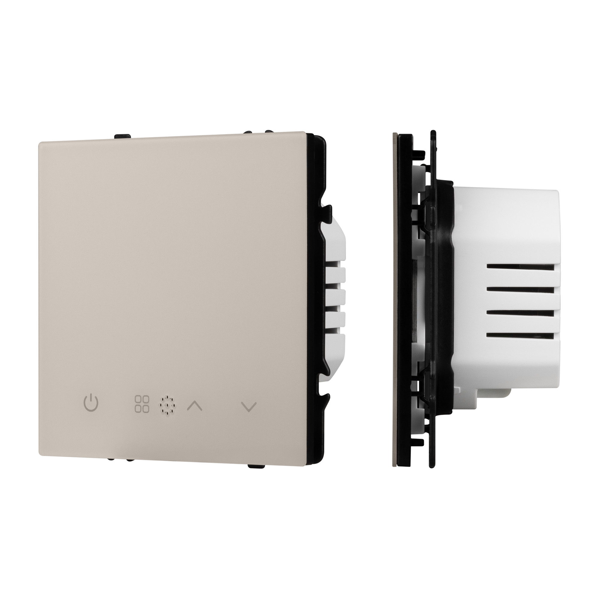 Терморегулятор совместим с рамками серии NOBE, создает утонченный минималистичный вид. Скрытый тип монтажа позволяет гармонично встроить в интерьер любого современного дизайн-проекта. Видимая часть механизма выполнена из глянцевого поликарбоната цвета кашемир, что придает изделию приятные тактильные ощущения и стильный внешний вид.