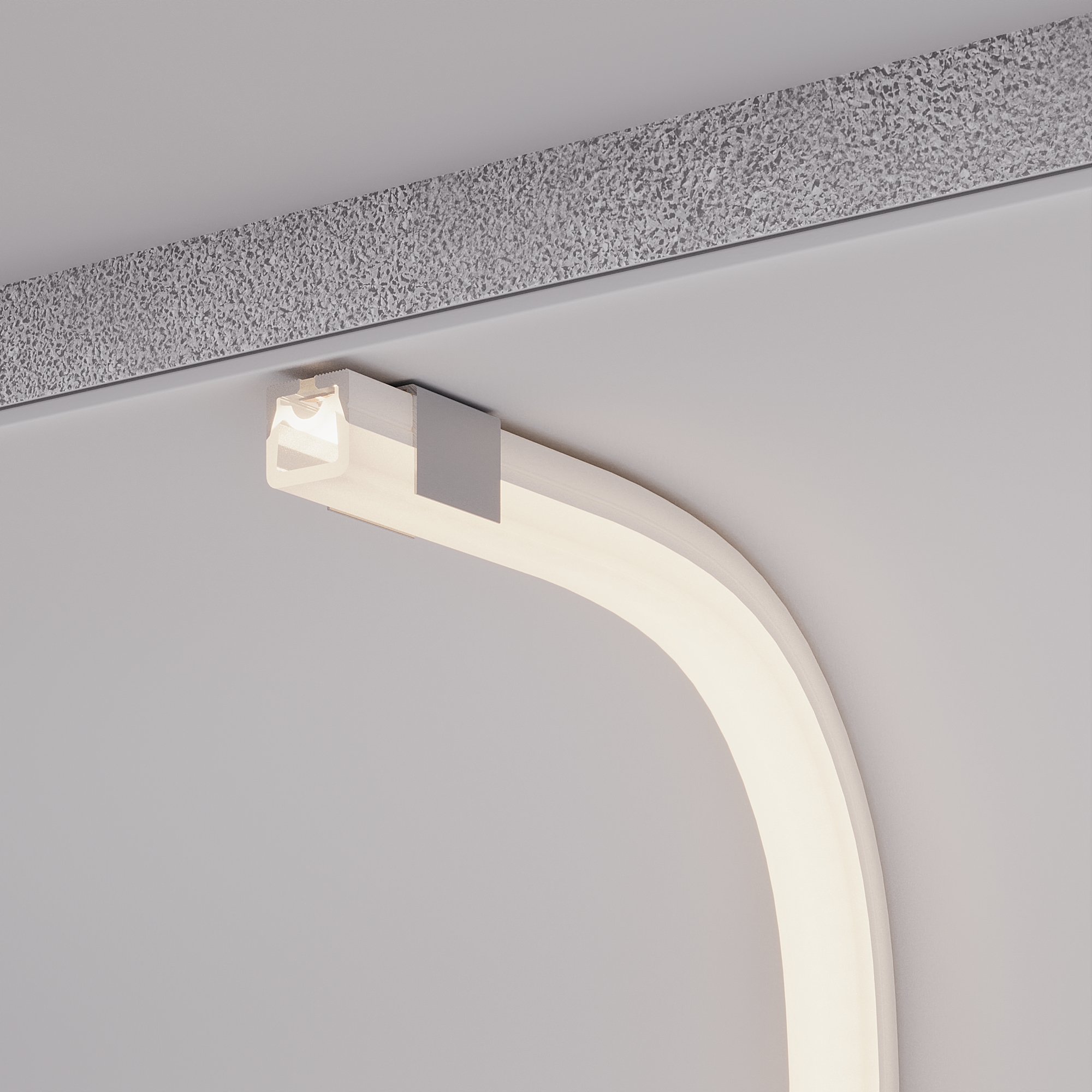Цельнолитой силиконовый гибкий профиль белого цвета. Габаритные размеры профиля составляют 20000 мм в длину, 20 мм в ширину и 20 мм в высоту. Вертикальный изгиб TOP, минимальный радиус изгиба 60 мм. Угол излучения 140°. Для удобства установки ленты по всей длине профиля протянута нить. Площадка для установки светодиодных лент позволяет использовать ленту шириной от 10 до 12 мм, высотой до 4 мм и мощностью до 10 Вт/м. Это обеспечивает гибкость в выборе светодиодных лент и создает потрясающие световые решения. Для установки во влажных помещениях необходима герметизация при помощи двухкомпонентного эпоксидного герметика. Класс пылевлагозащиты – IP65 (при соблюдении технологии герметизации). Этот продукт представляет отличное решение для создания современных световых проектов и обеспечивает надежную и стильную основу для установки светодиодов. Для накладного монтажа на 1 метр профиля рекомендуем использовать не менее 3-х держателей. Подходит только для установки внутри помещения