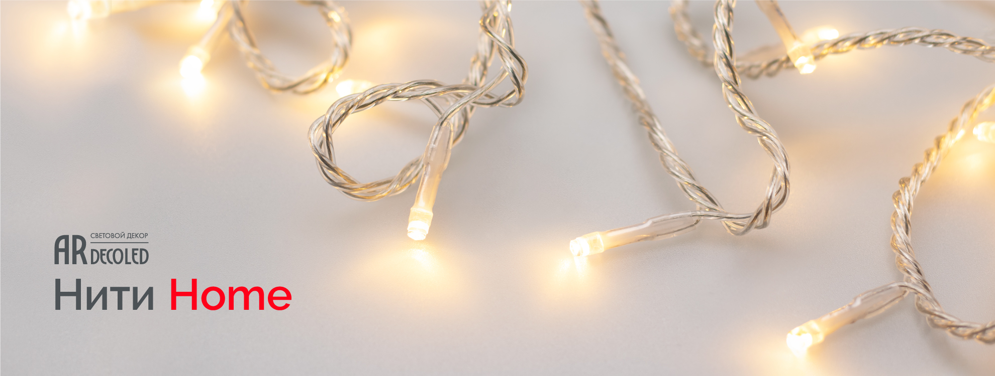 С гирляндами «Нити» серии HOME легко оформить домашний интерьер: просто разместите гирлянду-нить на стеллаже, подоконнике или в нише, создайте декоративную композицию в прозрачных вазах или надпись на стене. Большой выбор моделей с различными динамическими эффектами поможет задать подходящую атмосферу.