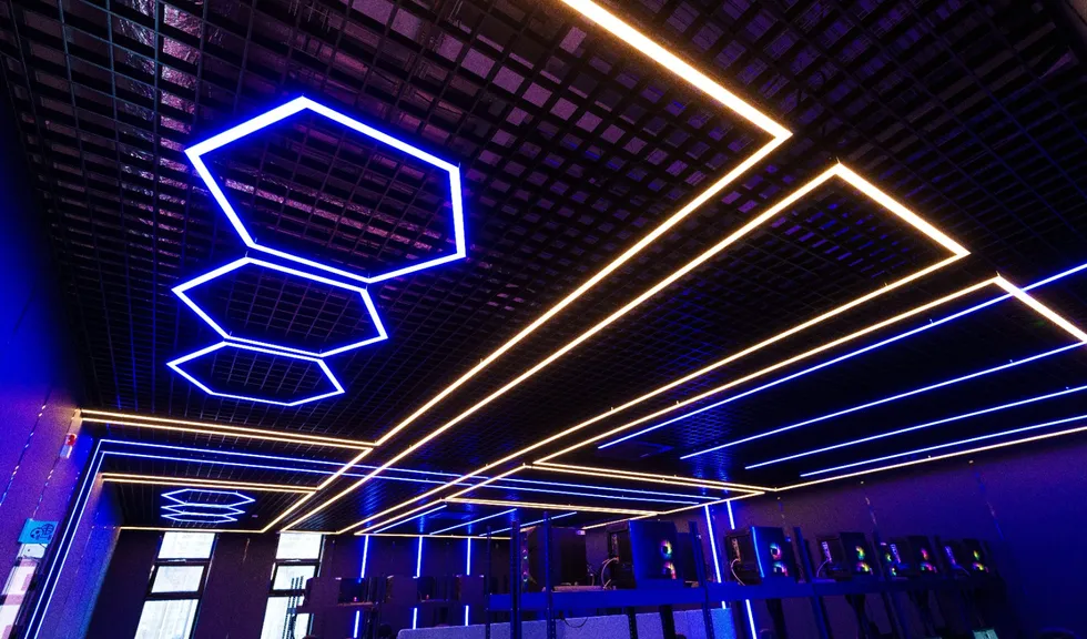 Геометрические фигуры из линейных профильных светильников со светодиодной лентой серий RTW и MOONLIGHT отлично вписываются в пространство центра. Минималистичные во внешнем исполнении, они создают основное освещение.