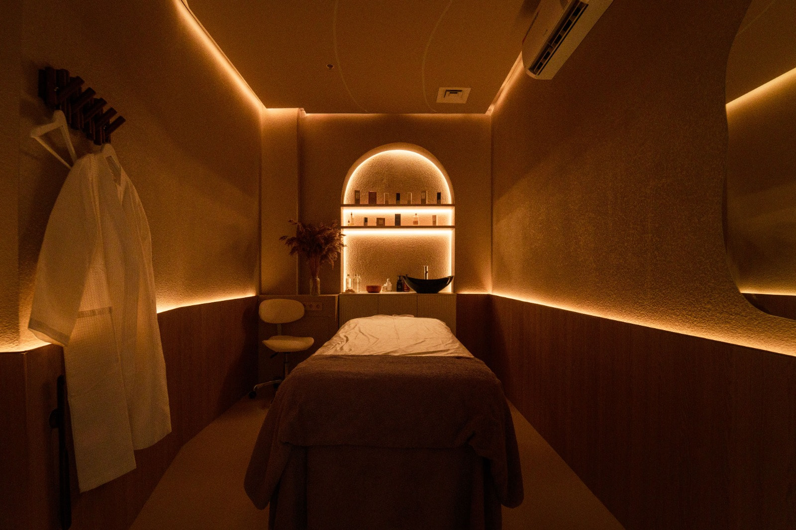 декоративной подсветки ниш, полок и контура зеркал с помощью ленты RT A80, добавляющей уют и расслабляющую эстетику.